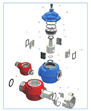 ◆ 可视阀体位置:旋塞帽上的可视回转式限位器清楚地表明阀是完全打开或关闭,制动弹簧将阀限制在所需的位置上;